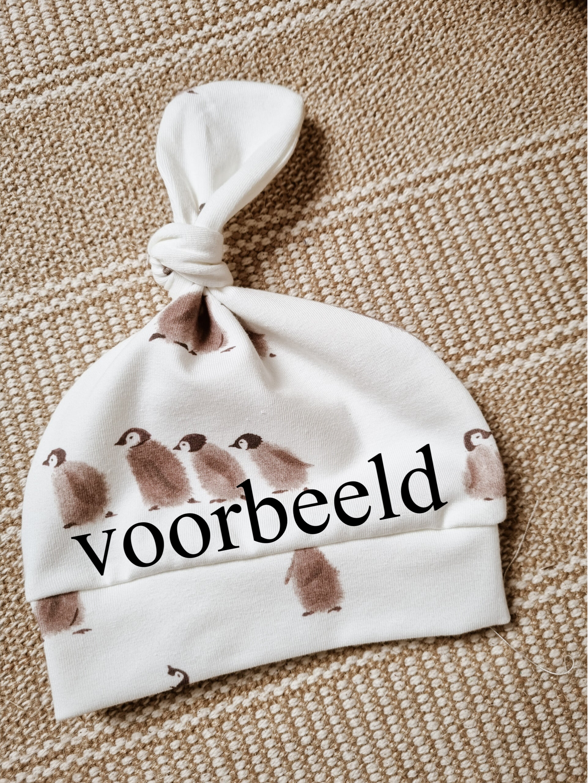 Fijne zachte knopmutsje is van rekbare tricot gemaakt.Dit lieve knoopmutsje maakt de outfit van jou kleintje helemaal af. Er zit een knoop aan de bovenkant die je zelf kan verstellen, hierdoor kan je het mutsje iets groter of juist kleiner maken.