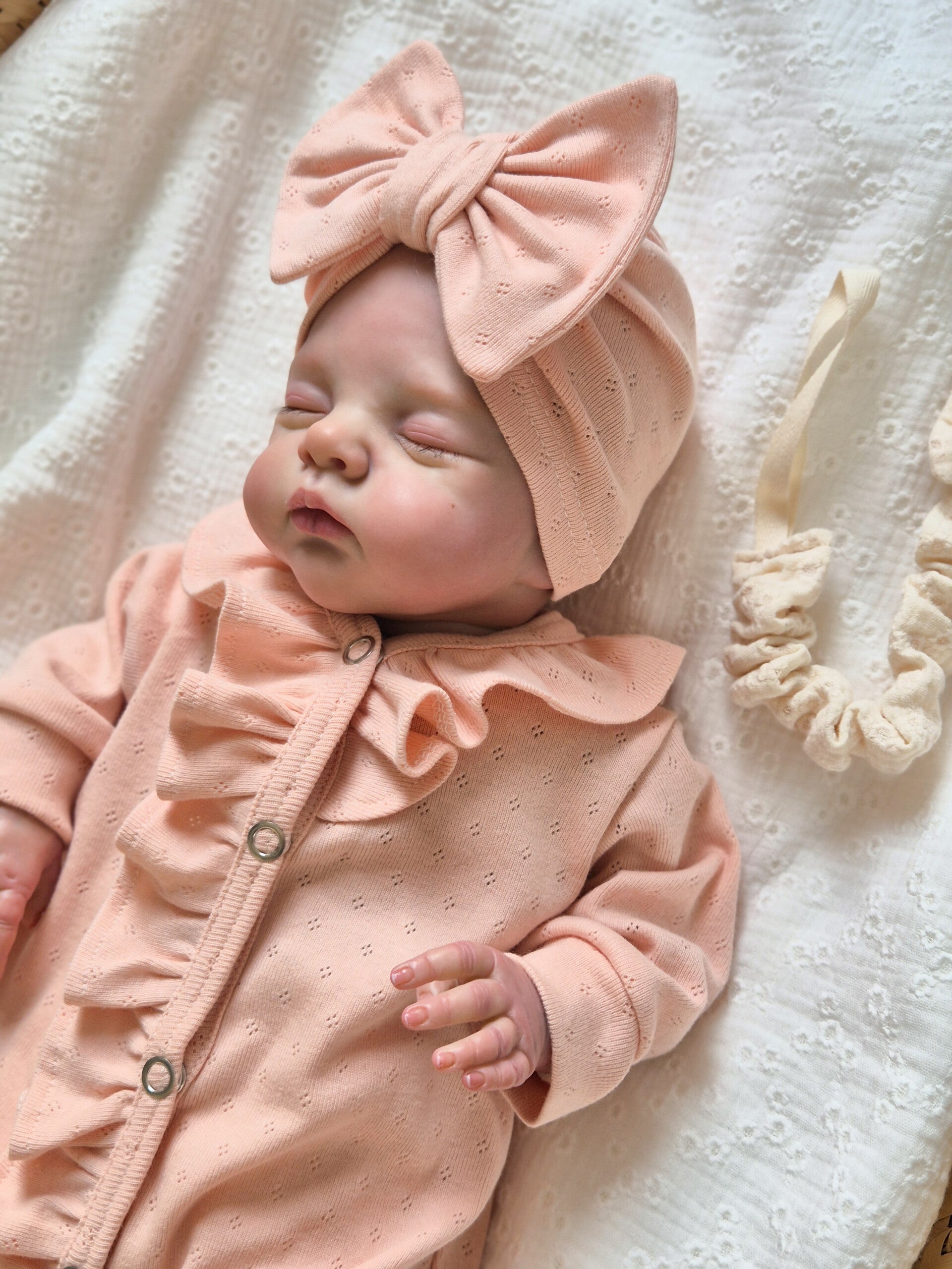 Combineer het met mutsje,haarband of strikbandje en maak het outfit van je kleine helemaal af.