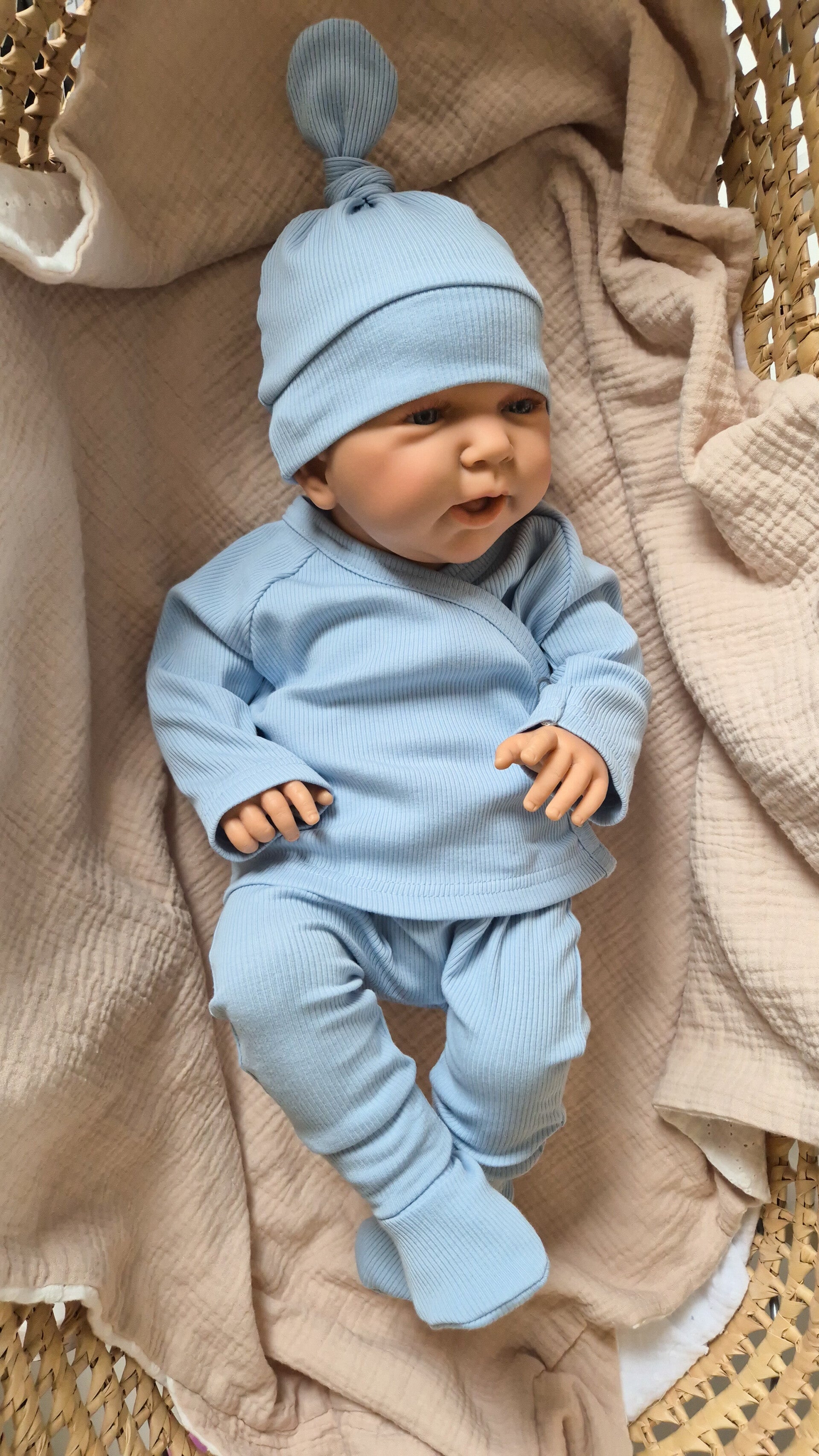 Fijne zachte knoopmutsje is van rekbare tricot gemaakt.Dit lieve knoopmutsje maakt de outfit van jou kleintje helemaal af. Er zit een knoop aan de bovenkant die je zelf kan verstellen, hierdoor kan je het mutsje iets groter of juist kleiner maken.