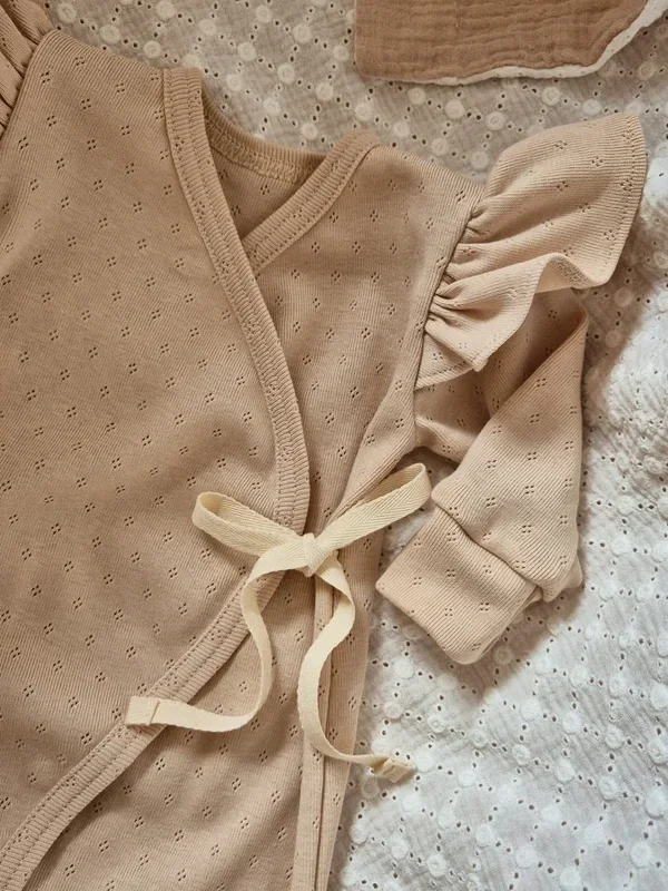 De turbanstijl met schattige knoop maakt dit mutsje een echte eyecatcher en ideaal voor de eerste dagen, fotoshoots of kraamvisite. Dankzij de zorgvuldige afwerking blijft het mutsje ook na meerdere wasbeurten mooi in vorm.