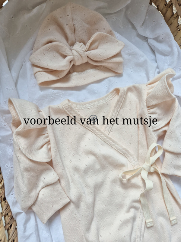 De turbanstijl met schattige knoop maakt dit mutsje een echte eyecatcher en ideaal voor de eerste dagen, fotoshoots of kraamvisite. Dankzij de zorgvuldige afwerking blijft het mutsje ook na meerdere wasbeurten mooi in vorm.