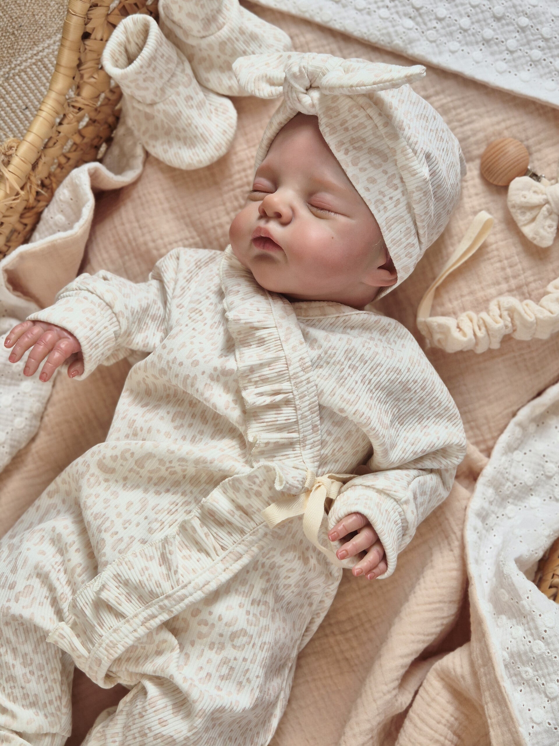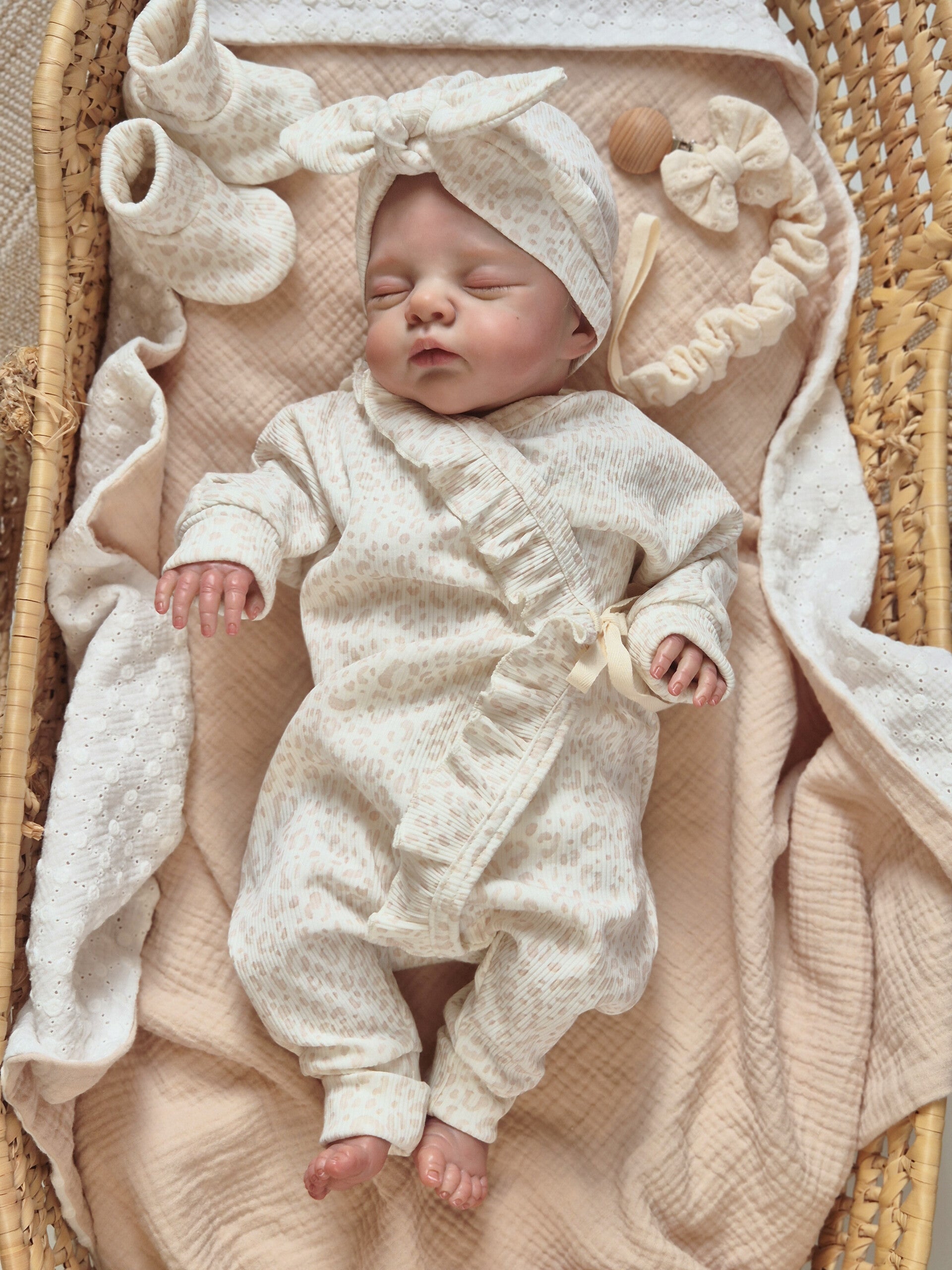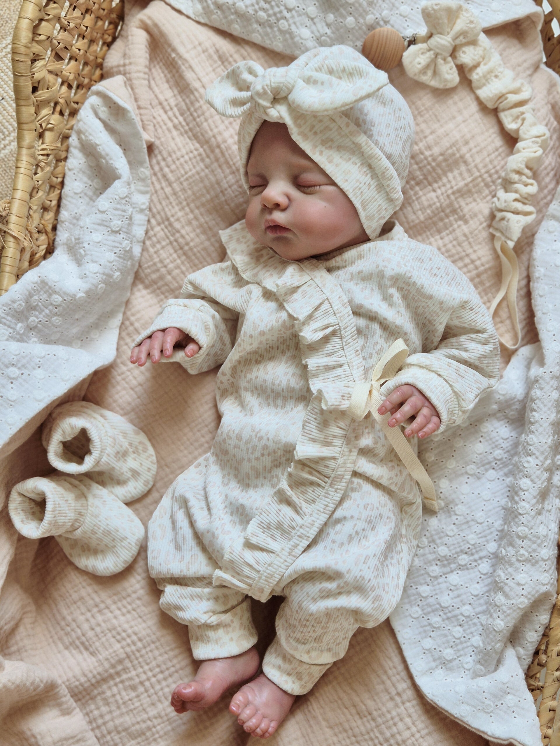 Alle ruffels zijn zorgvuldig en netjes afgewerkt, zodat ze ook na meerdere wasbeurten mooi in vorm blijven. Zo blijft het pakje er niet alleen bij de geboorte, maar ook daarna nog prachtig uitzien.