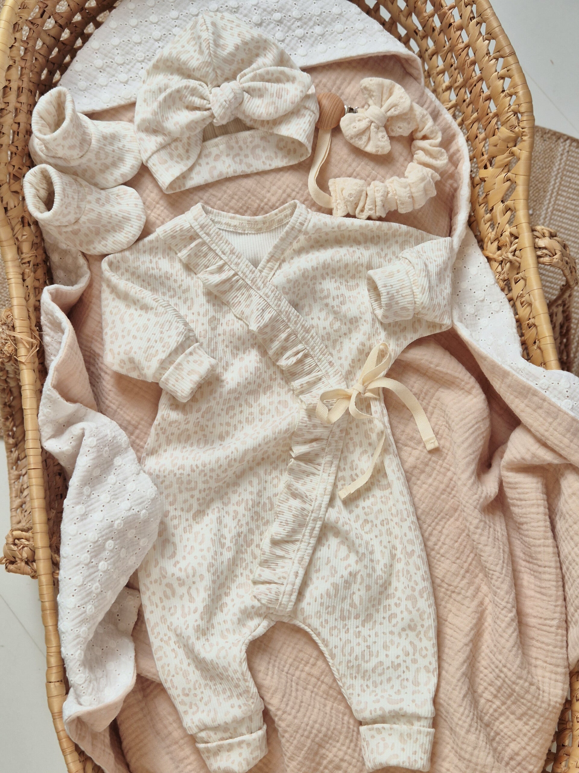 Overslagboxpakje met ruffle rand gerib *Luipaard blush beige*