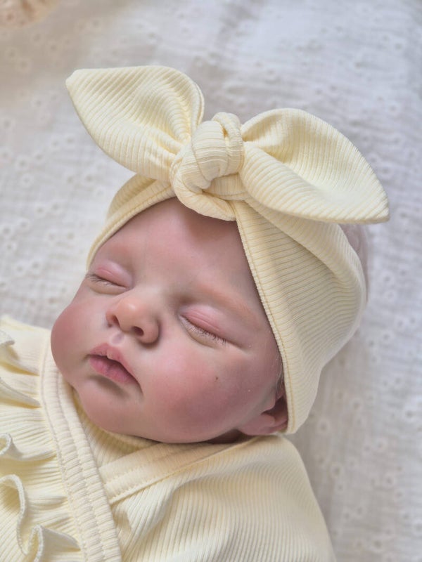 Zachte haarband van ribstof.De haarband kun je zelf op het hoofdje van je kleine aanpassen