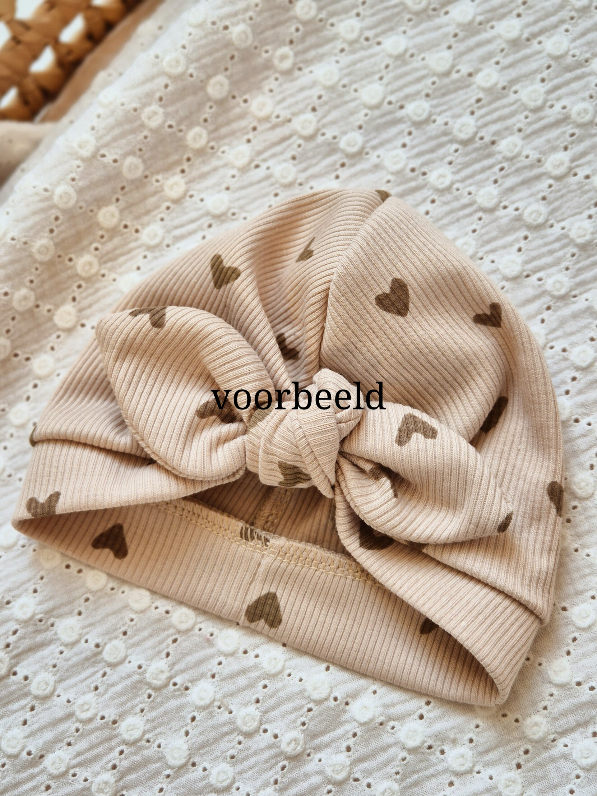 Het mutsje is gemaakt van een comfortabele, rekbare ribstof, zodat het zacht aansluit zonder te knellen en heerlijk aanvoelt op het tere babyhoofdje.