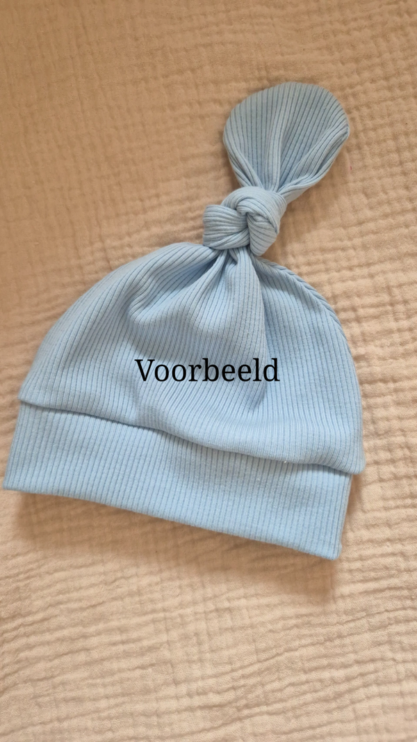 Fijne zachte knoopmutsje is van rekbare tricot gemaakt.Dit lieve knoopmutsje maakt de outfit van jou kleintje helemaal af. Er zit een knoop aan de bovenkant die je zelf kan verstellen, hierdoor kan je het mutsje iets groter of juist kleiner maken.