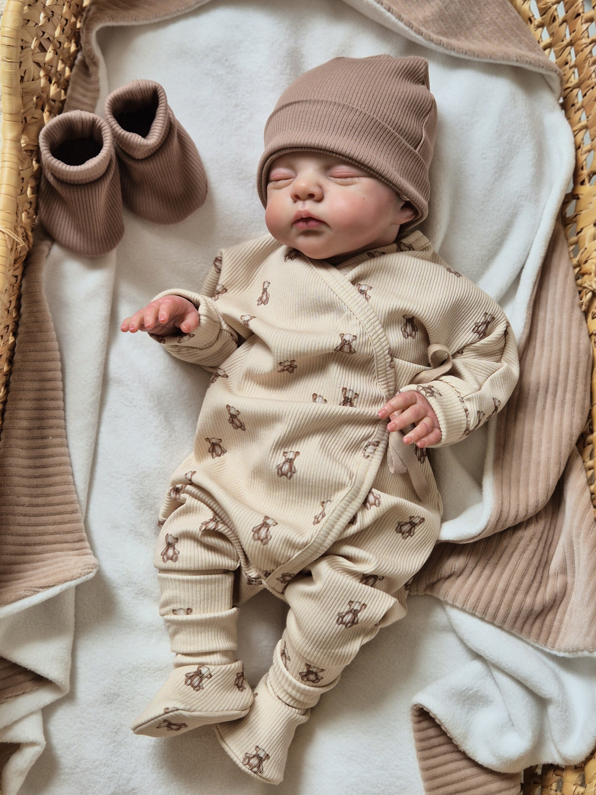 Mooi te combineren met bijpassende slofjes of een geboortepakje voor een complete set.