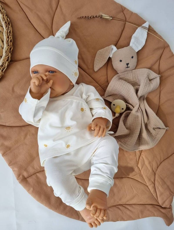 Voor alle kleding geldt: Binnenste buiten met gelijke kleuren wassen op 30 graden en niet in de droger. Strijken kan op de laagste stand.